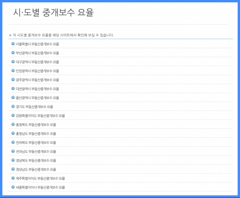 참고로 거래 지역별로 부동산 중개보수 요율이 조금씩 차이가 있을 수 있습니다. 정확한 지역별 중개수수율표는 아래 사이트를 통해서 확인해 보시길 바랍니다.