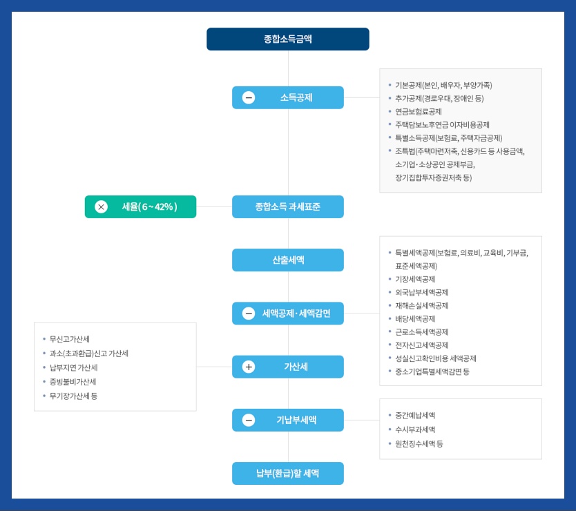• 과세표준 = 종합소득금액 - 필요경비 - 소득공제